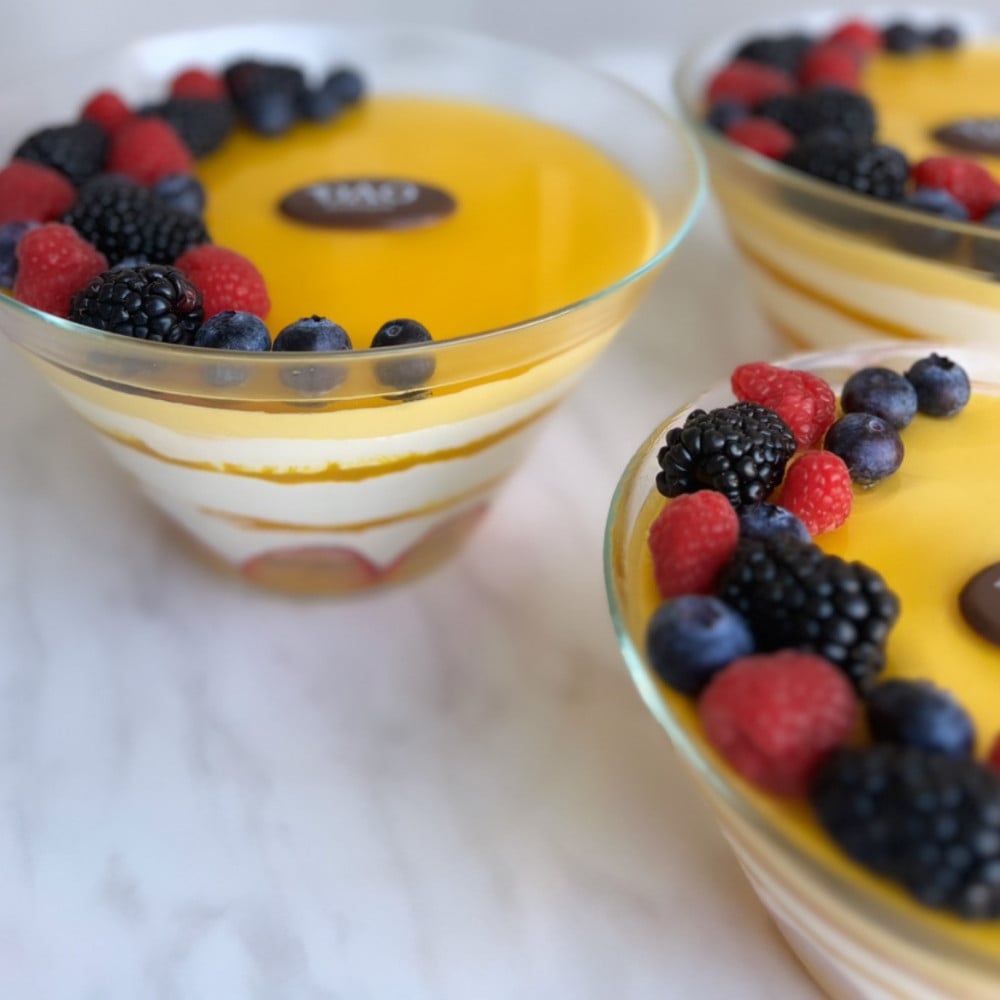 طبقات من الترايفل كيك وفواكة الموسمية و مانجا